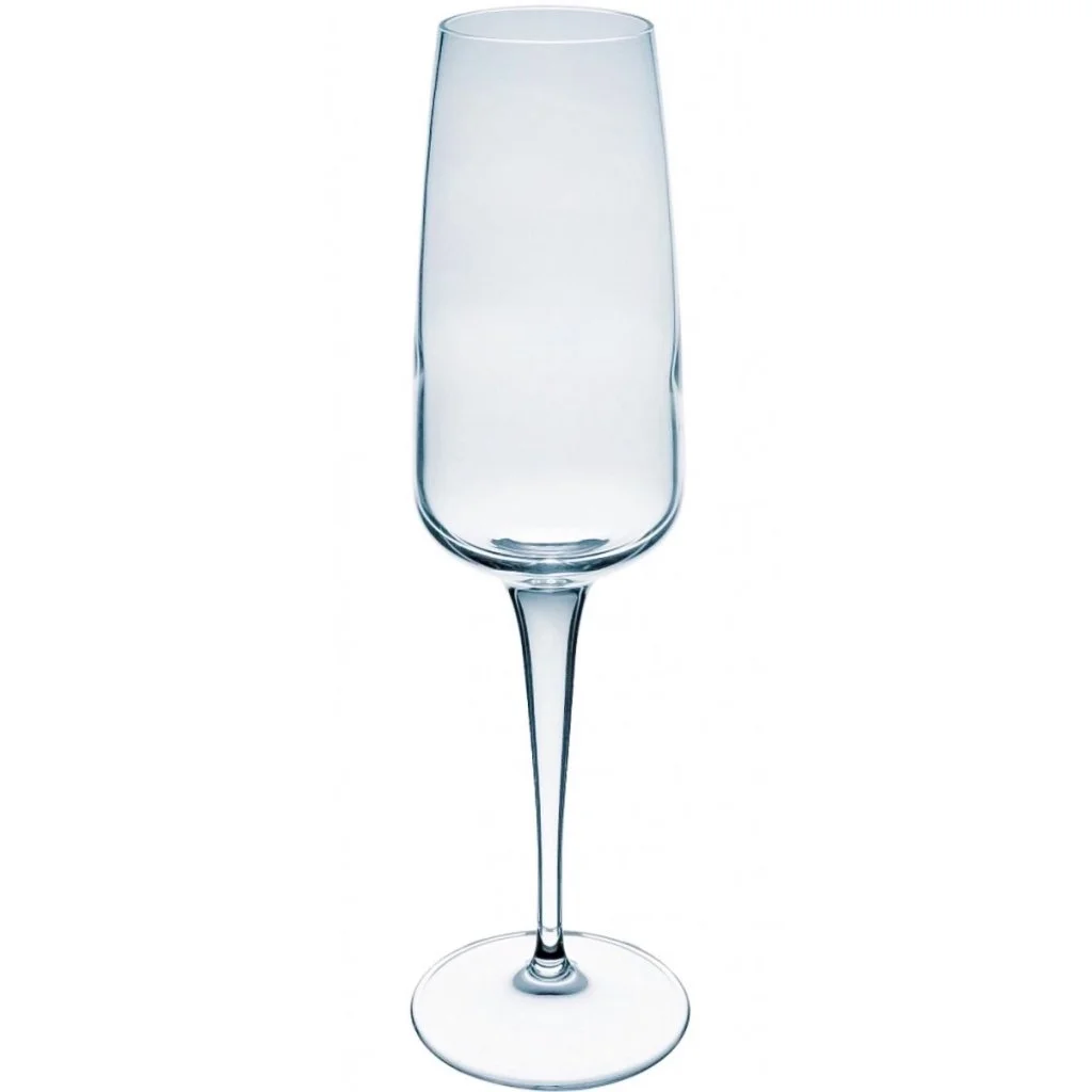 Ett stiligt champagneglas från italienska att aromupplevelsen att helt förstörs av koncentrerad kolsyra.