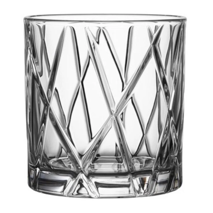 Designen i serien City har inspirerats från den moderna innerstadsmiljön. Känslan av att vara i centrum, men att samtidig hitta en lugn vrå att avnjuta en drink finns tydligt inkorporerad i Orrefors City- serien. Detta whiskyglas har en stabil botten och en rak glaskropp. Slipningarna har placerats lite snett vilket ger ett djup i designen, och att de fortsätter hela vägen ner genom foten på glaset skapar en känsla av höjd och dynamik. Orrefors City double old fashioned är en tumbler som passar utmärkt till Whiskey, Congac, Brandy, cocktails och andra spritsorter.