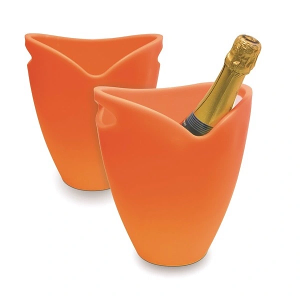 En stilig ishink i färgen Mango från Pulltex. Denna vinkylare håller ditt vin eller champagne kallt och är tillverkad av det lätta materialet akrylplast. En greppvänlig kylare som försetts med två handtag vilket underlättar hanteringen och fördjupningen på ena sidan stabiliserar vinflaskan och gör tömning av isvatten enkelt. Tål maskindisk.