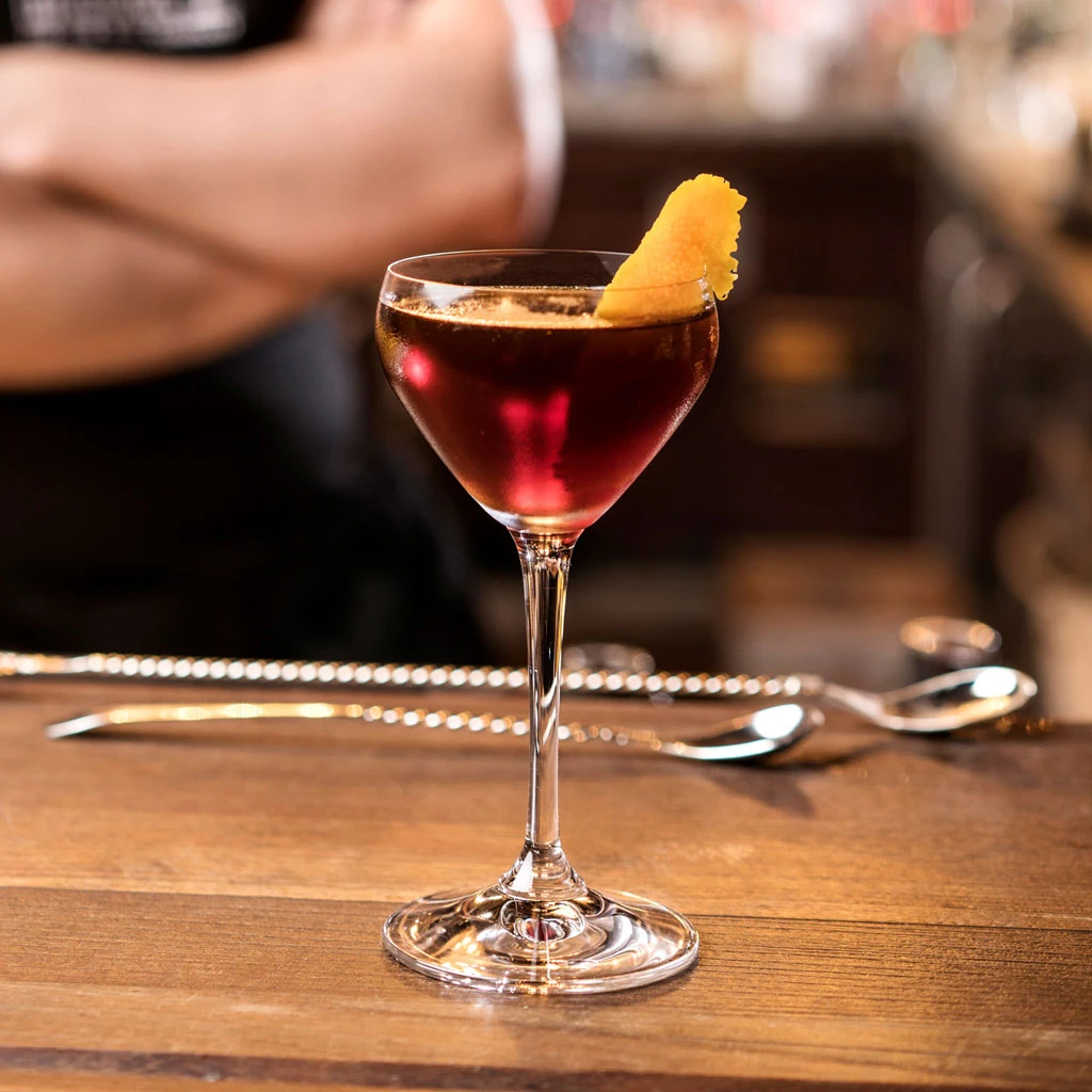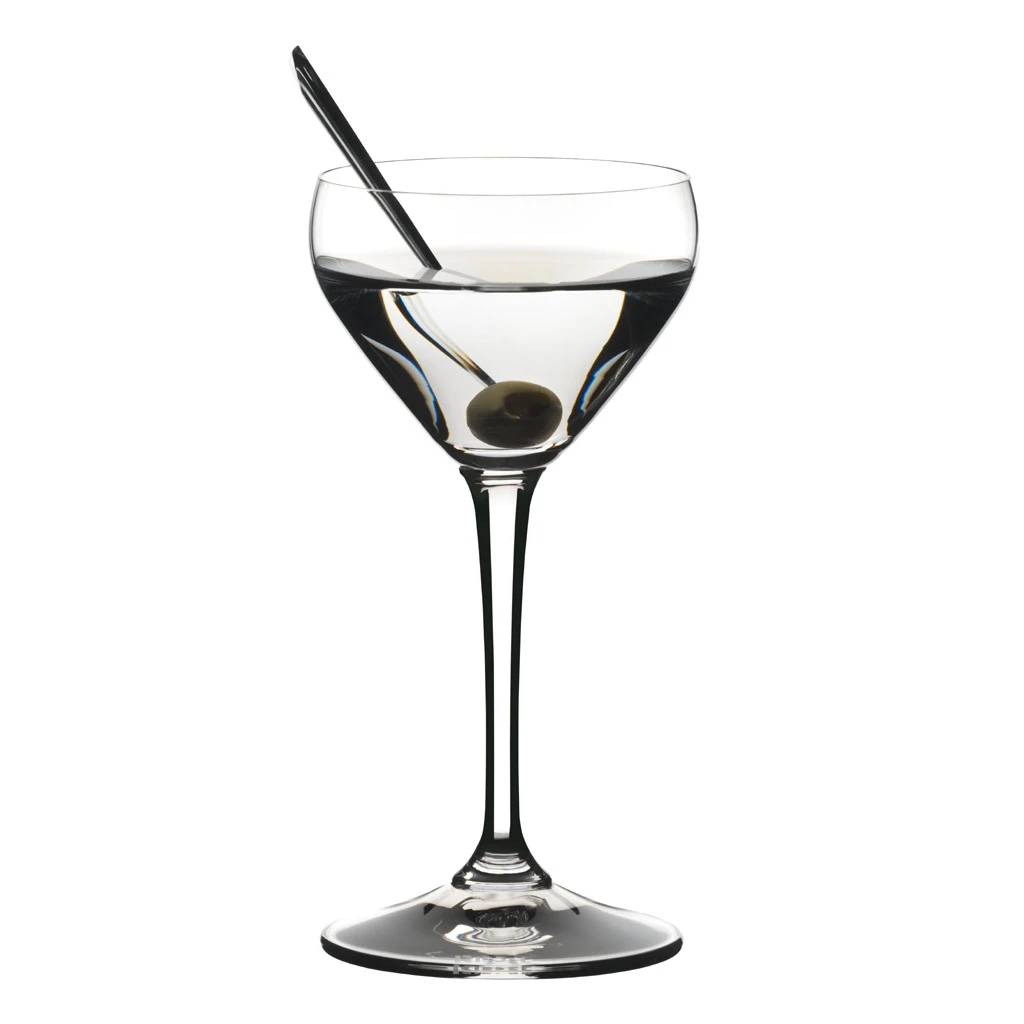 Nick & Nora Drink Specific Drinkglas från Riedel är utformat så att du måste luta huvudet lite bakåt när du dricker, detta för att innehållet ska hamna mitt på tungan så smakerna framträder som tänkt.