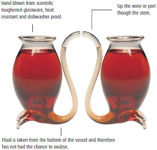 Ett annorlunda sätt att avnjuta sitt portvin. Dessa glas har utformats för att ge möjligheten att avnjuta sitt portvin med minimal exponering av syre. Den smarta designen med en öppning i form av ett sugrör gör att man dricker från botten på glaset, vilket ger en traditionell, och mycket fokuserad smakupplevelse.